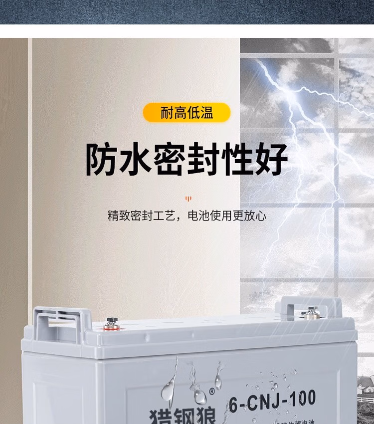 猎钢狼 户外太阳能胶体蓄电池12v家用大容量储电池电瓶路灯专用光伏电池 6-CNJ-100AH