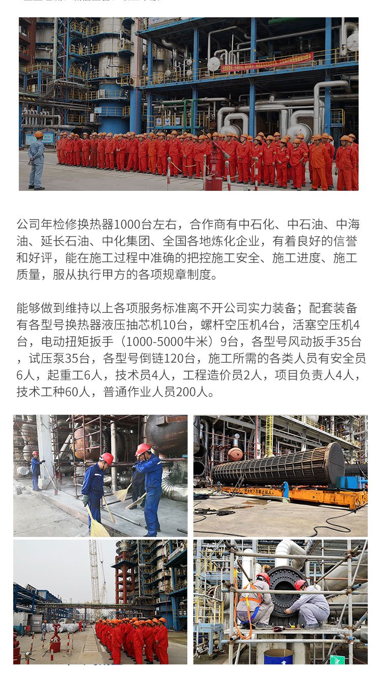换热器检修 用于维修冶金化工石油电力 处理方便 清洗成本低